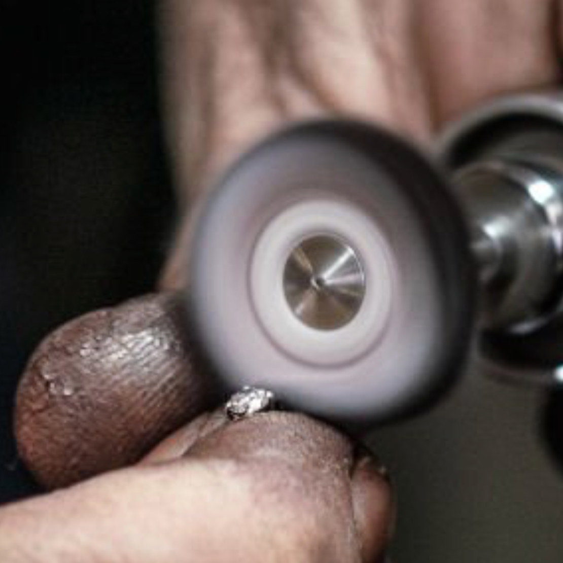 Casting and setting involves shaping the metal into the desired form and carefully securing diamonds to complete the piece.