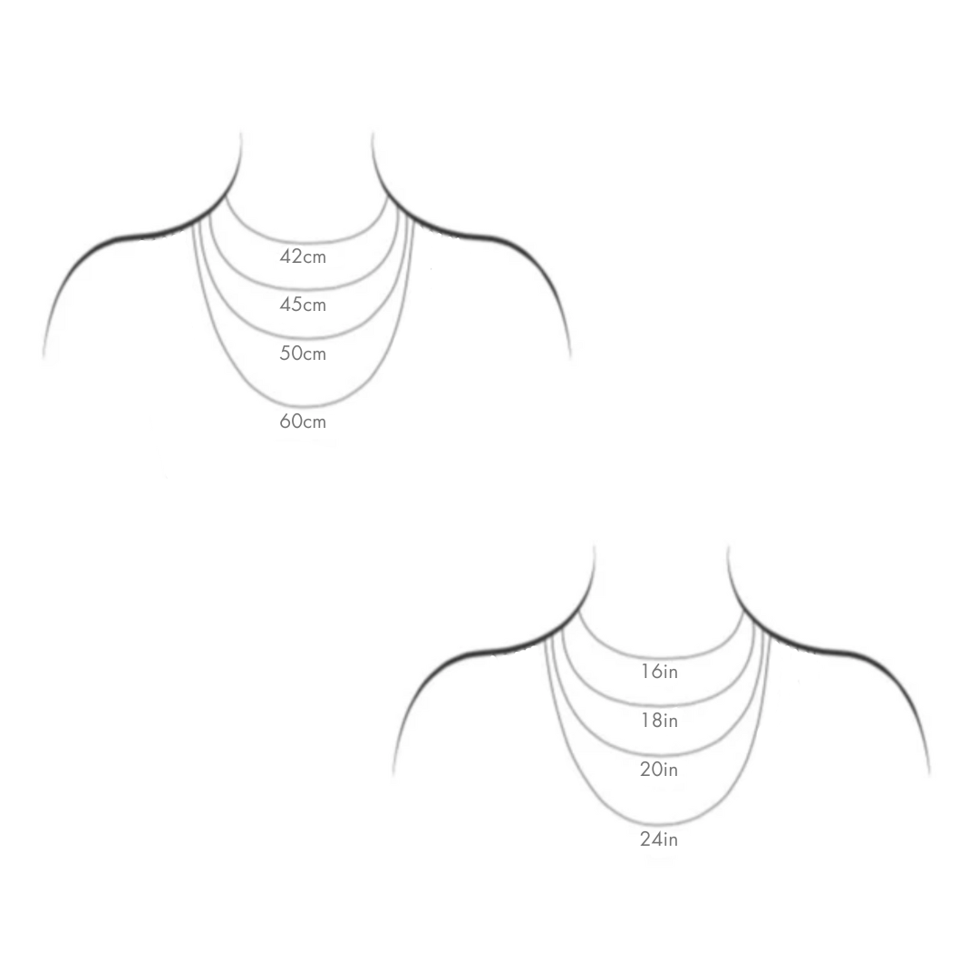 At Vivella we have the ability to offer all sizes of necklaces due to our custom made upon order process. Our most popular and versatile size being 45cm / or 18".