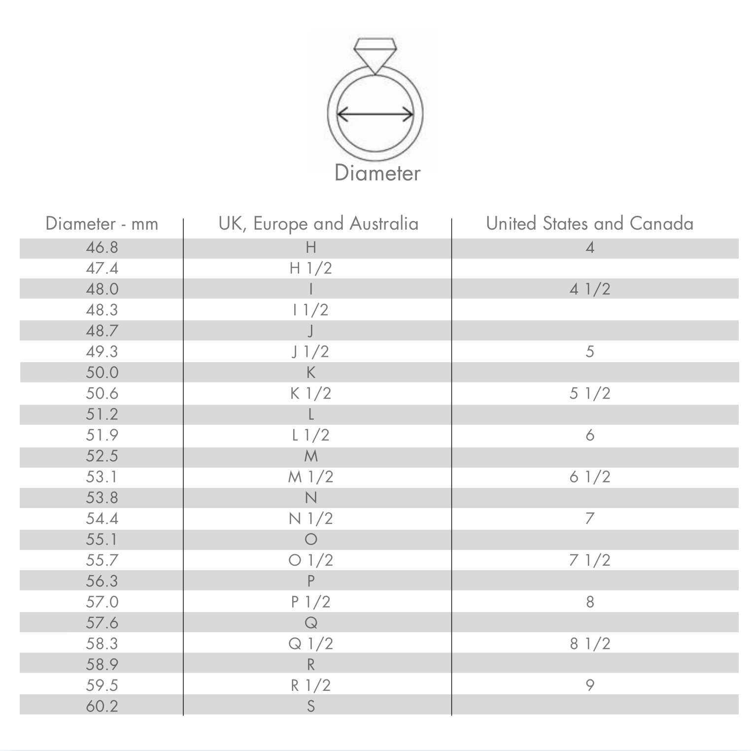 At Vivella we have the ability to offer any ring sizes, our rings are available to order from sizes H through to S, however due to our custom made upon order process we are able to accomodate custom sizes outside this range upon request.